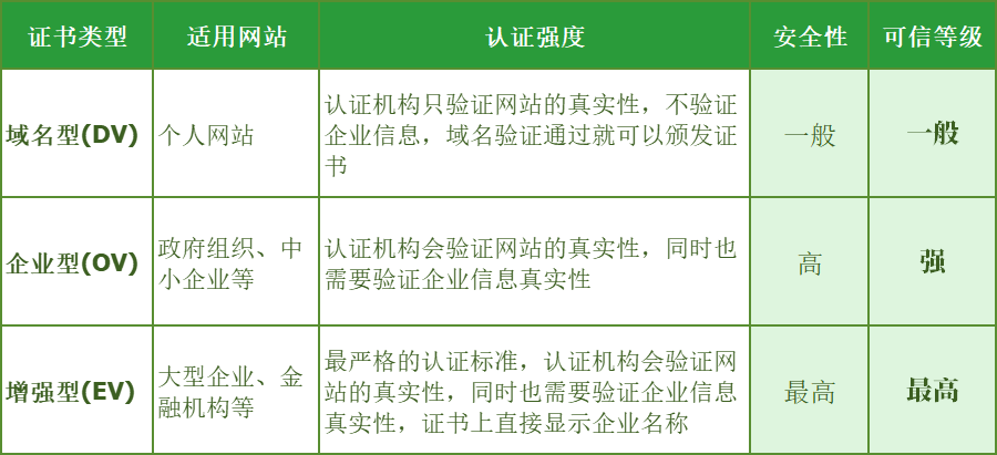 你可選擇"域名型(DV)"、"企業型(OV)",它們的區別如下: